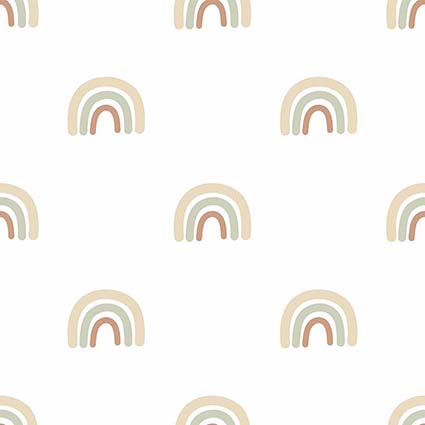 A cutesy wallpaper of multicoloured rainbows in pastel shades. With lots of white space this fun children’s wallpaper won’t overpower the room and would work on all the walls or just an accent wall.