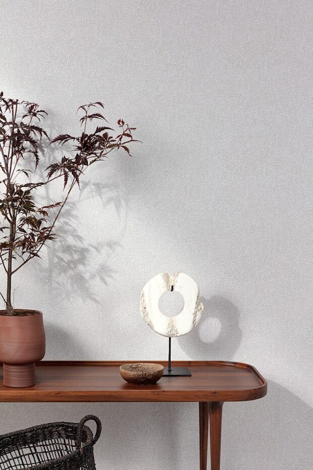 Goanna goes back to the core of Aboriginal art: painted dots. This rich plain wallcovering owes its name to the Australian lizard of the same name, which also has a dotted skin for camouflage.